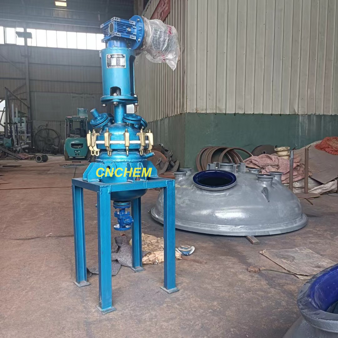 ??????????????????????? 專業(yè)設(shè)計,精工制作,我公司為滿足工廠、院校、科研單位等實驗室的試驗需要,開發(fā)出了以小型搪瓷反應(yīng)釜(即小型搪玻璃反應(yīng)罐)為主體的實驗室用搪瓷小型成套設(shè)備,配套有小型的搪瓷管件、換熱器、儲罐等設(shè)備。搪瓷實驗室用小型反應(yīng)釜規(guī)格為5L—50L,全套配置包括釜體、釜蓋、電機(jī)(防爆或普通)、減速機(jī)(渦輪渦桿免維護(hù)減速機(jī),擺線減速機(jī)等)、攪拌器(錨式63或85rpm, 槳式85或130rpm, 葉輪式85或130rpm)、加強(qiáng)型溫套管、放料閥(上展或下展)等,加熱方式有兩種:(1)通用型夾套,外置導(dǎo)熱油爐或鍋爐進(jìn)行加熱或冷卻;(2)電加熱:在夾套內(nèi)預(yù)置好電加熱棒,放入導(dǎo)熱油進(jìn)行加熱,如需冷卻,在靠近釜壁再加冷卻水盤管。支撐方式有兩種:(1)托耳:需要自制操作平臺;(2)支腿: 三根支腿,或四根框式支腿,落地式支撐。工作壓力≤10KGS,工作溫度-20℃—200℃,嚴(yán)格按照GB150-1998<鋼制壓力容器>和<壓力容器安全技術(shù)監(jiān)察規(guī)程>以及GB25025-2010《搪玻璃設(shè)備技術(shù)條件》等有關(guān)標(biāo)準(zhǔn)設(shè)計制作,具有耐腐性強(qiáng)、操控簡便、使用壽命長等特點。